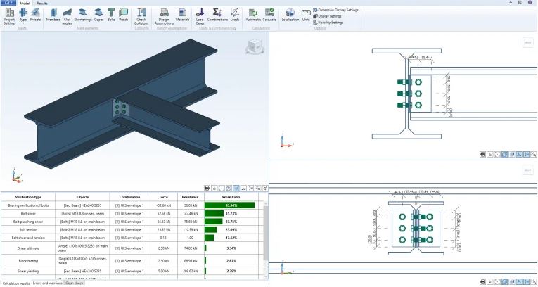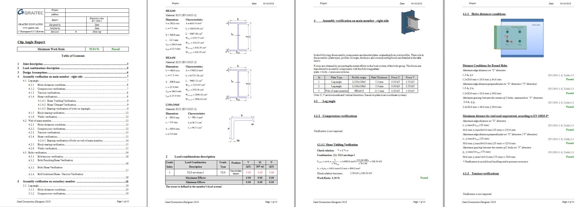 We produce, not only full steel calculations for every connection, both bolts, welds and plates, but also full fabrication plans so your steel fabricator can quickly, cheaply and accurately produce your steel beam with connections.